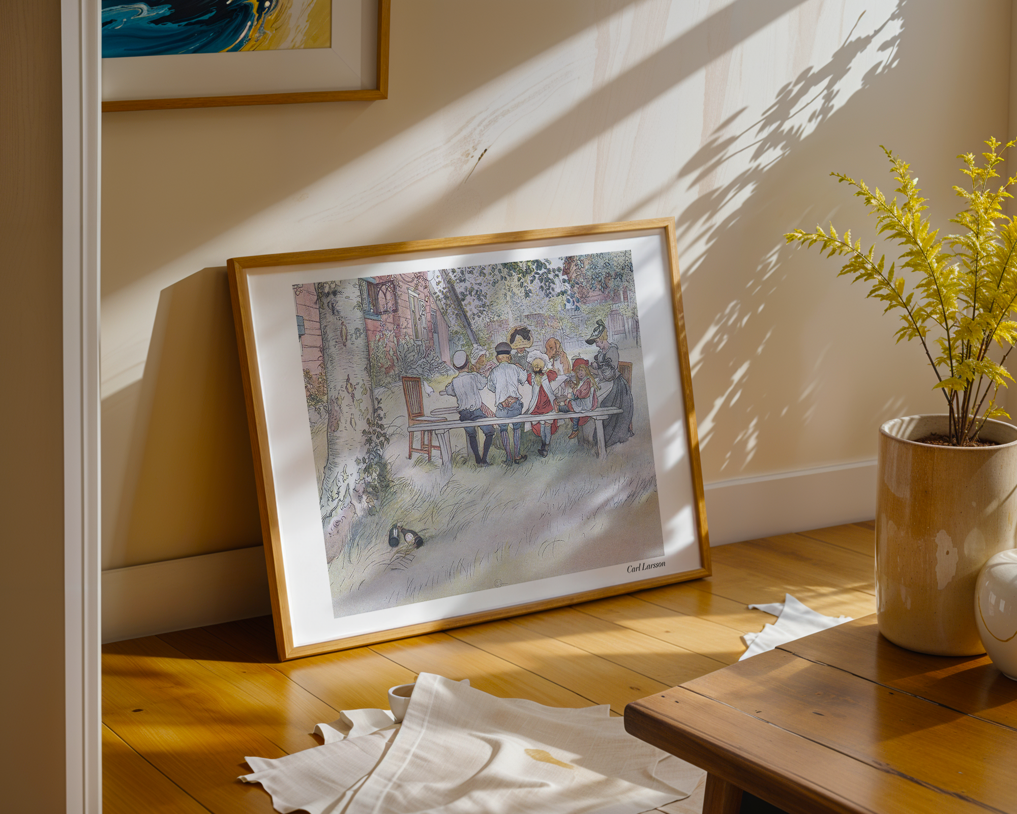 Carl Larssons konst är inte bara en återspegling av svenskt liv utan också ett bevis på samarbetet mellan konst och inredning. Tillsammans med sin fru Karin Larsson förvandlade han deras hem till ett levande konstverk, där färger, mönster och handgjorda detaljer blev en förlängning av hans målningar. Hans illustrationer fångar värmen från vardagliga ögonblick och blandar traditionellt hantverk med en distinkt personlig stil som fortsätter att inspirera den skandinaviska estetiken idag.