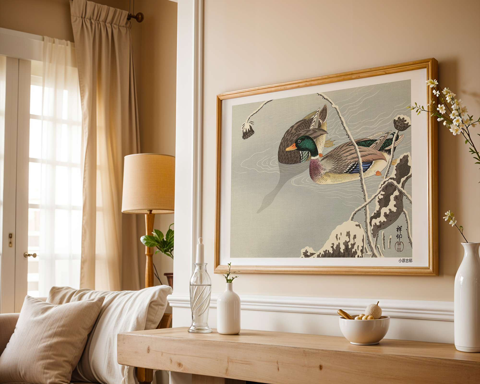 Känd för sina utsökta skildringar av vilda djur och växter, Ohara Koson gav en oöverträffad känslighet för den japanska grafikkonsten. Hans förmåga att förmedla intrikata detaljer och subtila färggraderingar lyfter hans kompositioner och skapar konstverk som känns både lugna och levande – perfekt för interiörer som söker en elegant och naturinspirerad atmosfär.
