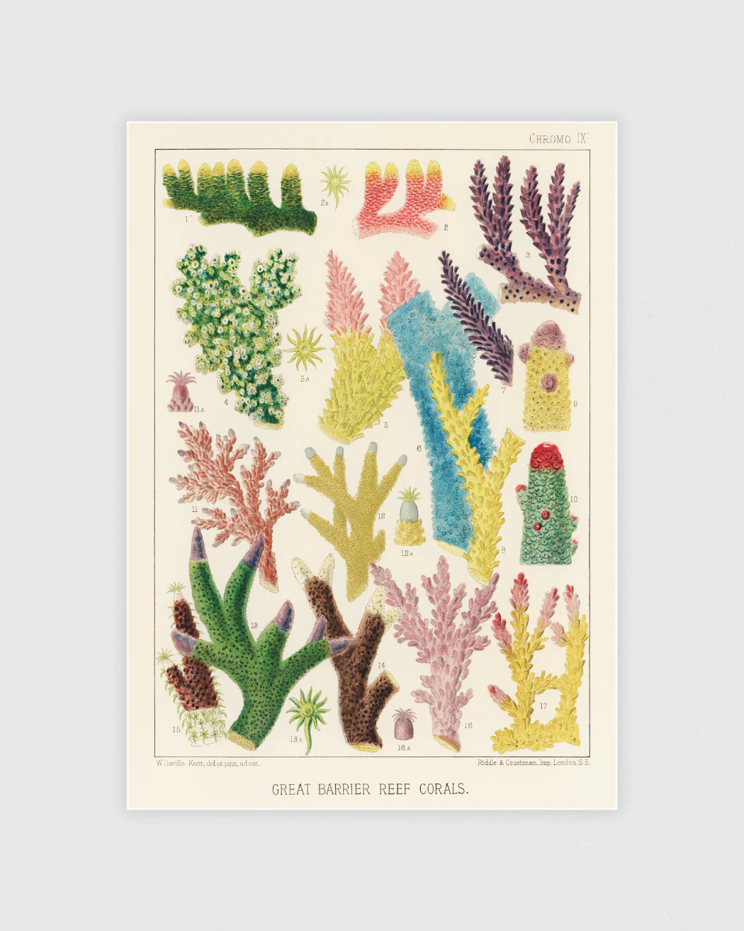 Posterpaket för Stora barriärrevet innehåller tre fantastiska marina illustrationer av William Saville-Kent, som var och en belyser revets pulserande liv: