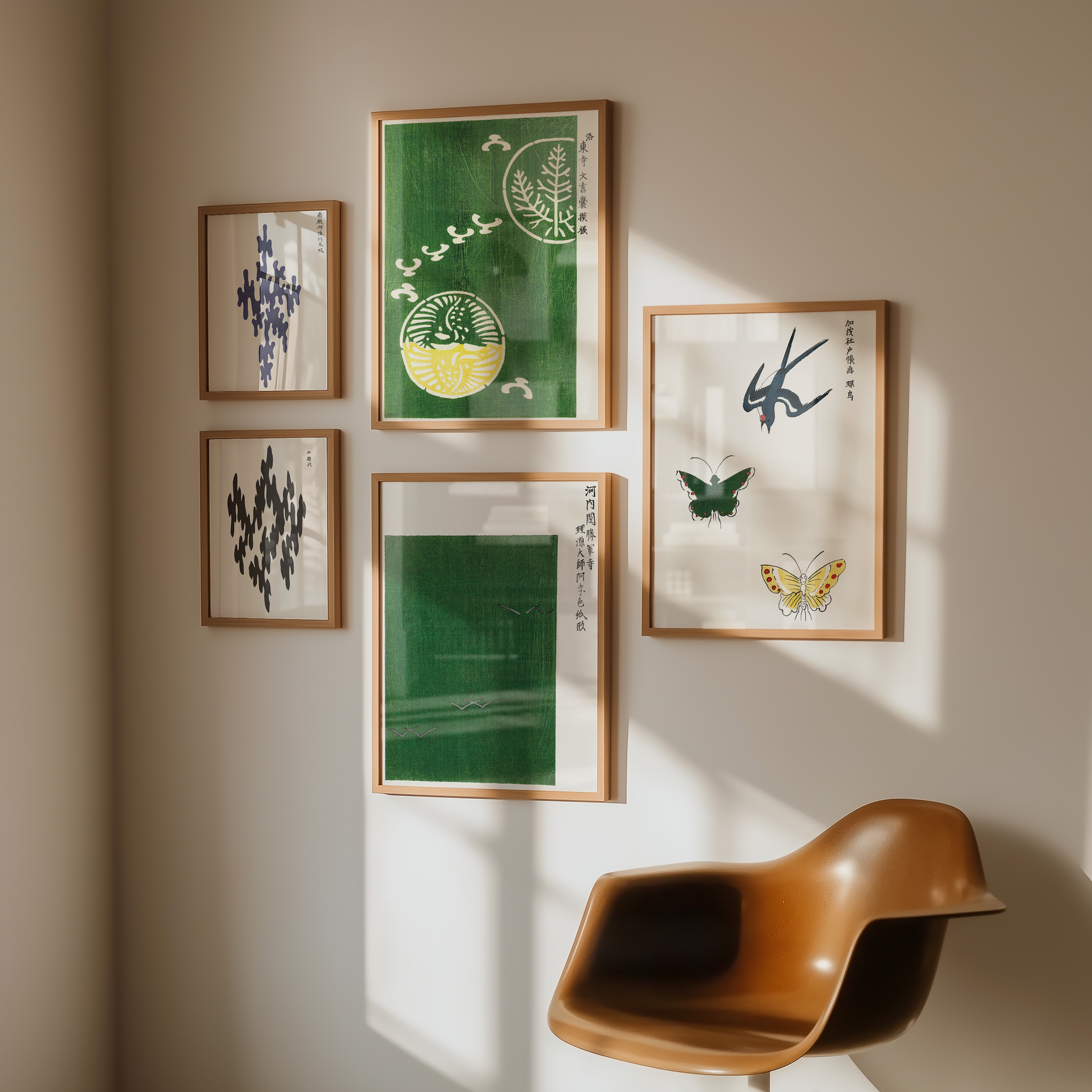 Tillsammans skapar dessa fem verk en harmonisk tavelvägg som för in essensen av japanskt konstnärskap i alla interiörer. Perfekt för vardagsrum, kreativa utrymmen eller kontor, erbjuder denna posteruppsättning en tidlös blandning av elegans och kulturellt djup.