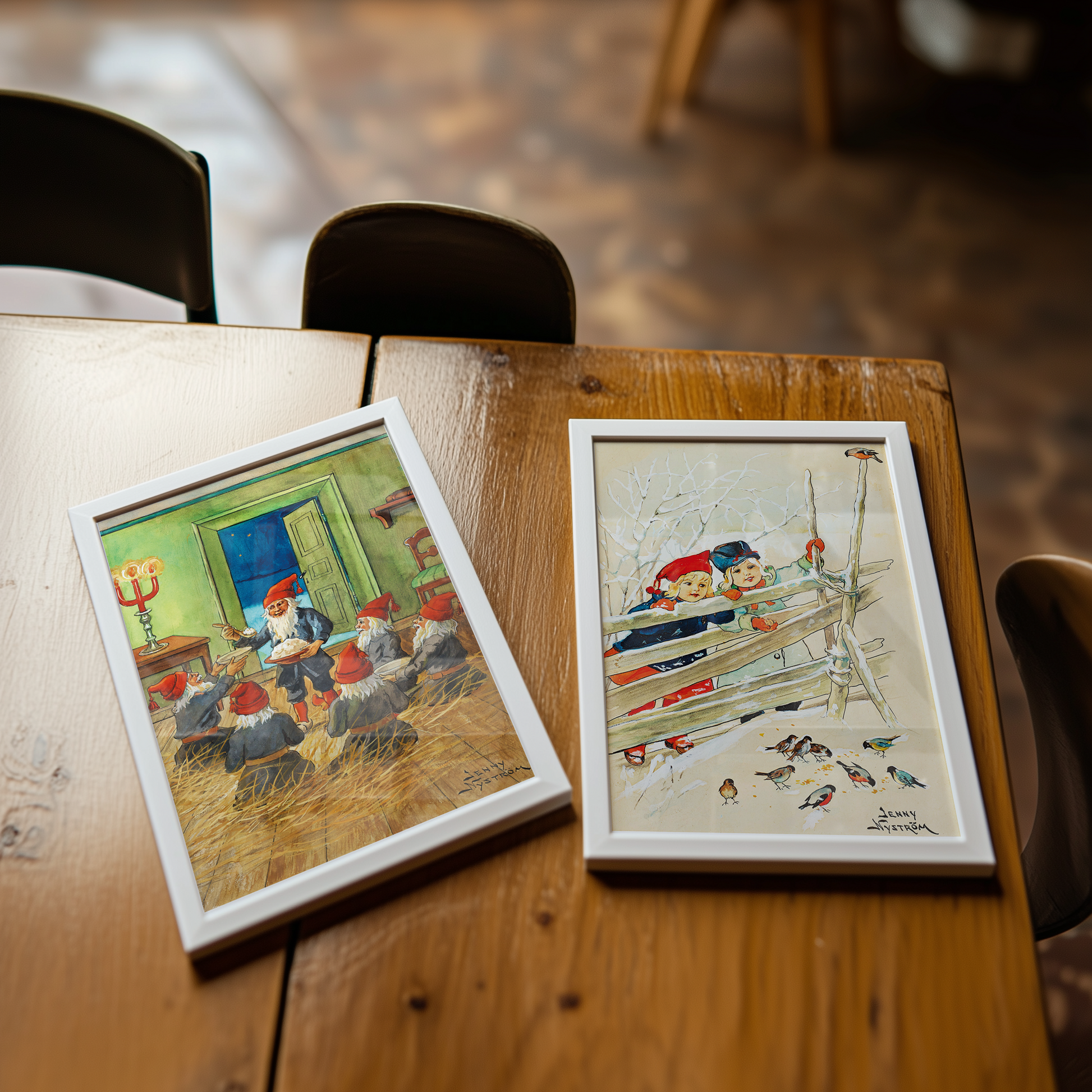 Visas som ett tryck skapar det en mysig och nostalgisk känsla i ditt hem. Kombinera det med andra posters i sagoboksstil för att ge en touch av tradition och fantasi till din festliga inredning.